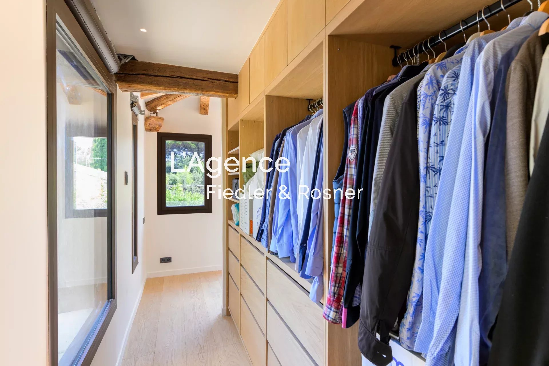 Custom-made closets and dressing rooms in all bedrooms, crafted with high-quality materials and solid wood.