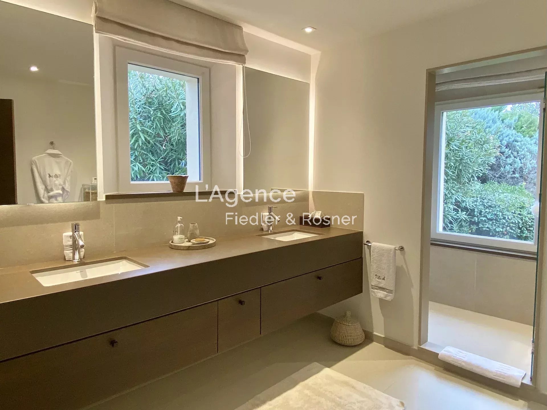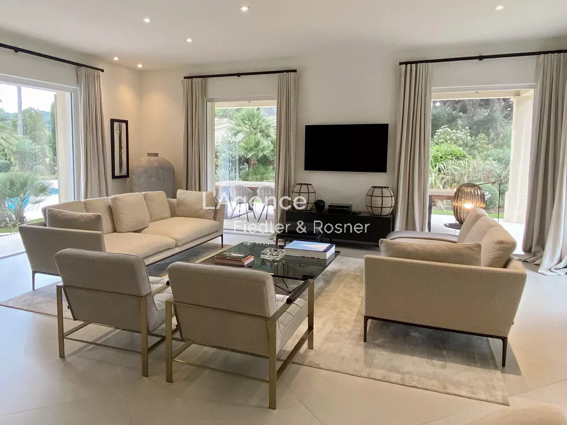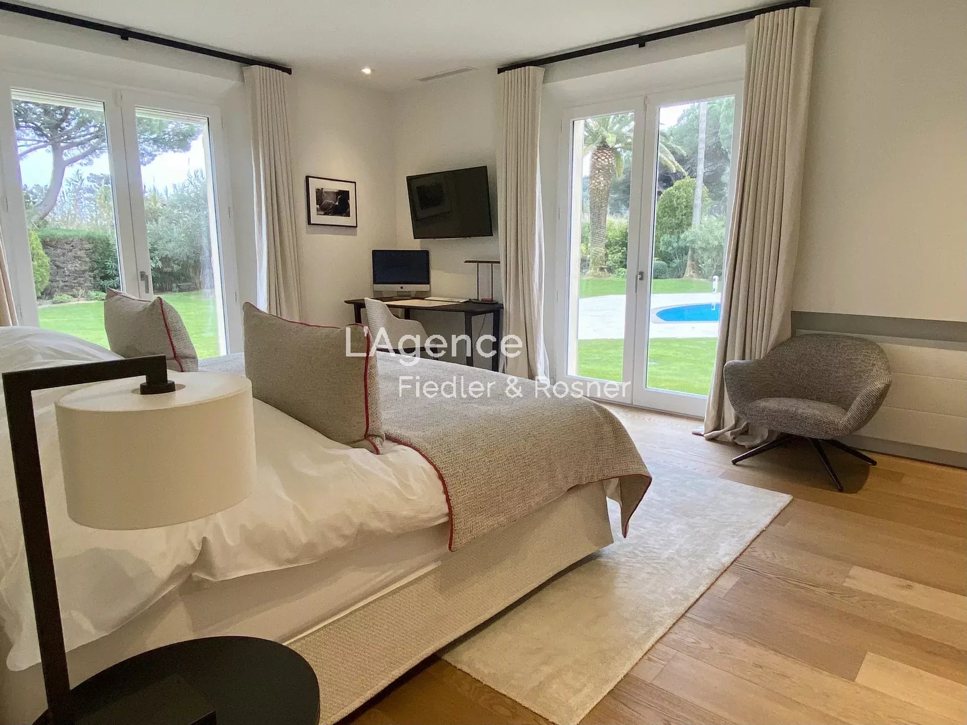 Outside: a 2,500 m2 park planted with olive trees, palm trees, pines, flower beds... An 80 m2 heated swimming pool, with an infrared ray alarm system.