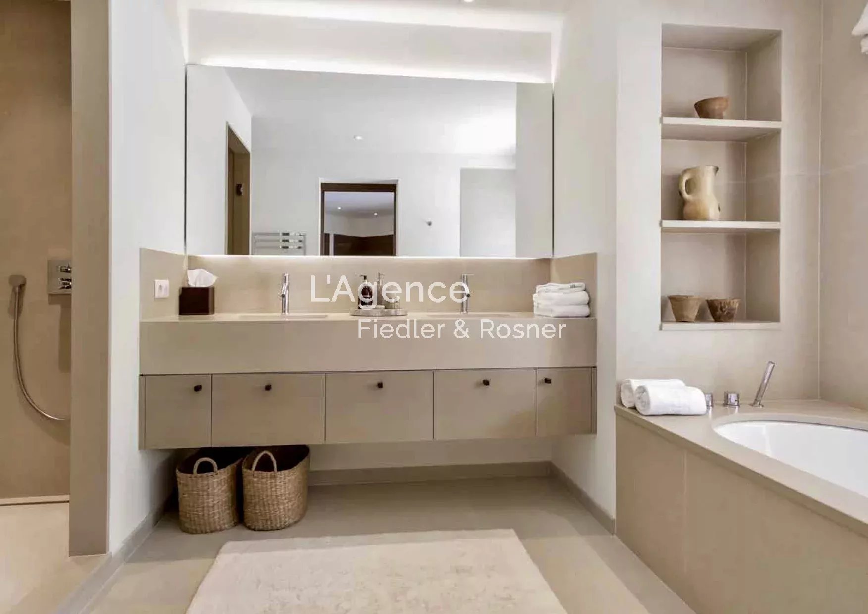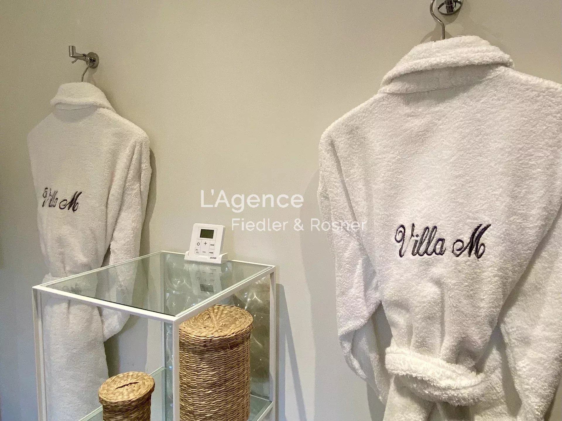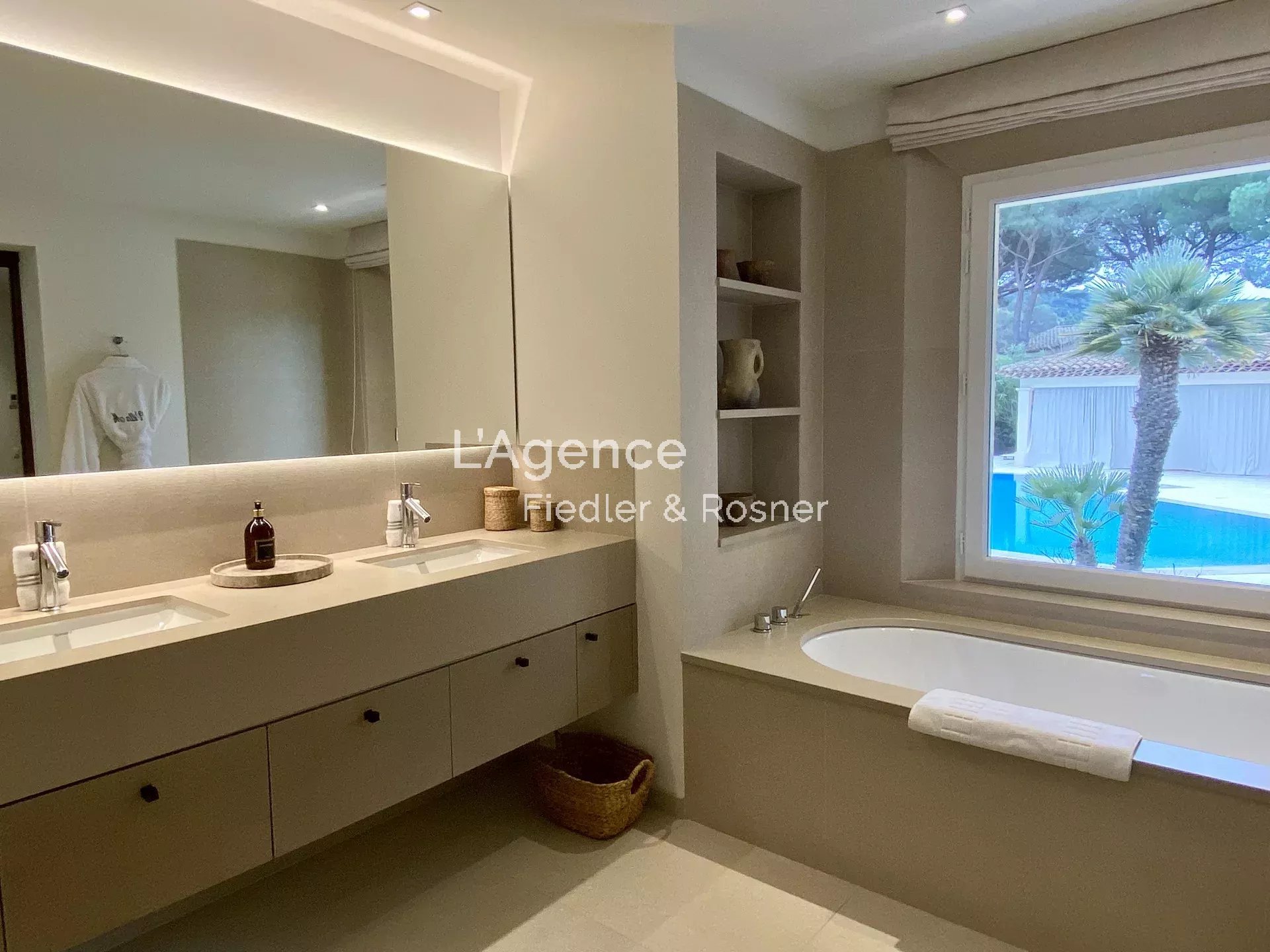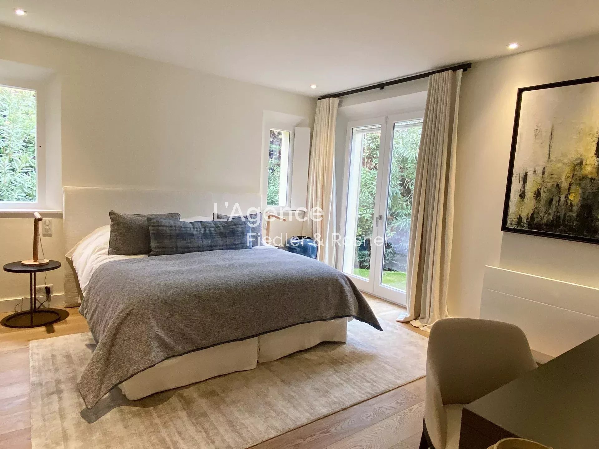 Outside: a 2,500 m2 park planted with olive trees, palm trees, pines, flower beds... An 80 m2 heated swimming pool, with an infrared ray alarm system.