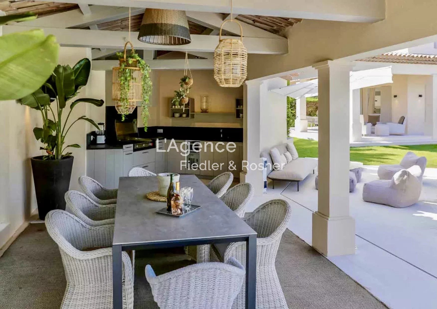A fully equipped Poolhouse of 30 m2 with its summer kitchen, its plancha, its Barbecue and its bar.